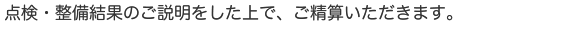 立ち会い説明の上、お見積もりを提示致します。お客様不在のディーラー車検と違い、問題があればお客様立ち会いのもとで自動車整備士によりご納得いただけるまでご説明させていただきます。