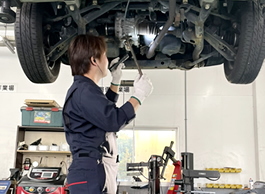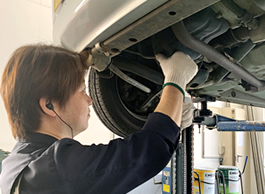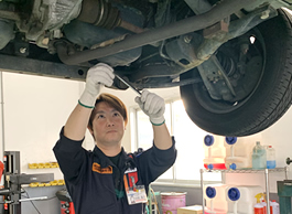 検査員が説明し、同じ目線で確認していただけます。 | 最新の設備でお客様の車を点検します。 |